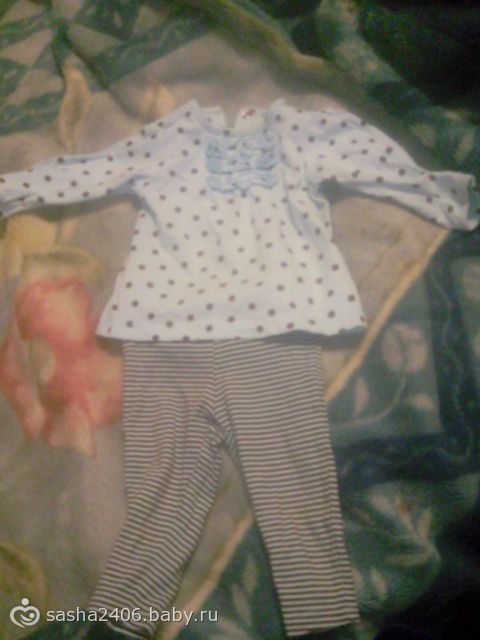 От дочки вещи остались в идеальном состоянии, как новые. Костюм фирмы Carters, маркировка на 9 мес. Мы носили с 8 мес до 1,3. качество изумительное. 100% хлопок. отдам за 350р