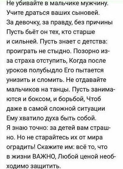 Уж лучше научить не связываться с уб люд ками. Какой такой любой ценой и какую правду защищать? Когда на улице отморозки ради потехи провоцируют драку, и убивают. В первую очередь надо научить пользоваться мозгами, а потом уже кулаками махать.