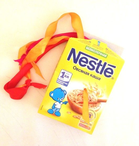 1. Коробка с лентами. Взяла атласные ленты разных цветов, связала их и спрятала в коробку. А высунула только хвостик из маленького отверстия. Ребенок тянет- а лента не кончается)) (можно делать из шарфов, платков, шнурков- что есть.)