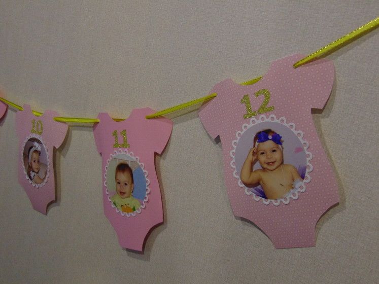 На соседней стене повесила растяжку в форме бодиков с фотографиями по месяцам.