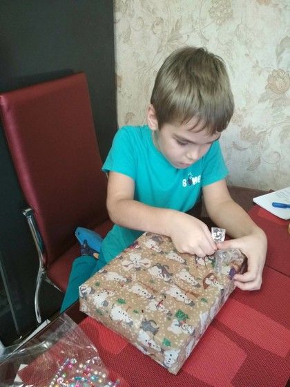 Подарков мы привезли не мало, поэтому принялись за дело. С собой брала разную бумагу, ленточки, салфетки и тд. Хотела взять крафт и самим украсить, но не нашла (