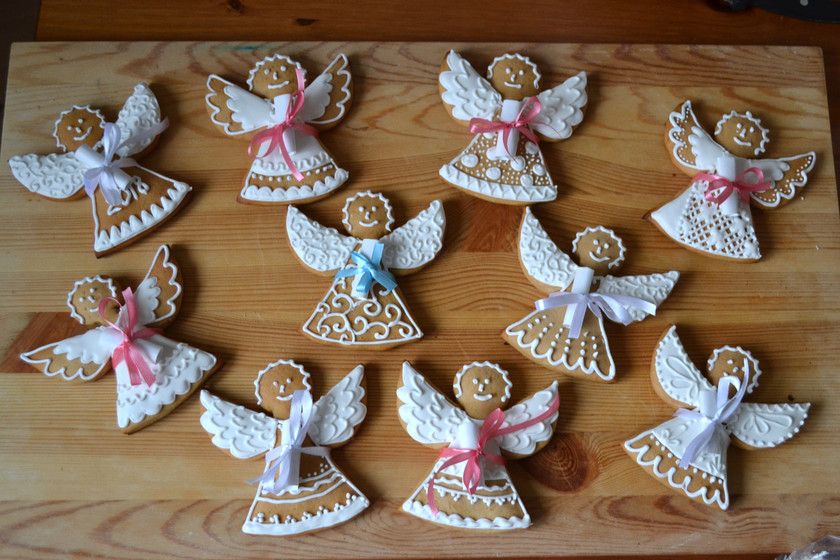 мы завтра ждем гостей)) и я придумала пряники в виде ангелочков, они большие с ладонь с пальцами))) это такие и вкусные презенты и еще и пожелание держатся на бантике))