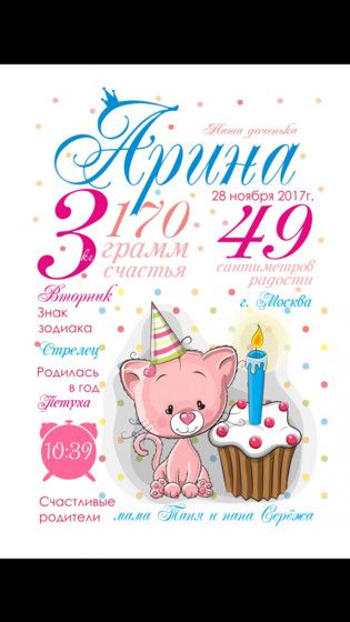 Наша метрика на память 7 января 2018 20:03 Метрика )))) заказала на память! Комментарии Пожалуйста, будьте вежливы и доброжелательны к другим мамам и соблюдайте правила сообщества ПожаловатьсяСкопировать ссылку Catherine Маргарита9 лет Москва На память))) а то вдруг забудешь)))Шучу) симпатично вышло! ПожаловатьсяСкопировать ссылку УлиткаЗаКалиткой Анечка11 летБогдана7 лет клёво))У нас тоже есть ? ПожаловатьсяСкопировать ссылку Verunna Доченька7 лет Москва Красиво как, мииилооо)))) ПожаловатьсяСкопировать ссылку Мартышка Малыш7 лет Гомель Скинь мне фото!!! Мне с телефона не видно ?. Пожалуйста!!! ПожаловатьсяСкопировать ссылку ВесенняяКапель Счастье7 летРадость4 года Екатеринбург Люблю такие вещички))) нам подарили метрику, тоже очень клевая. ПожаловатьсяСкопировать ссылку Ириша Мишутка7 летСтепан13 лет Ярославль Тоже сегодня заказала ПожаловатьсяСкопировать ссылку Мама Таня Арина7 лет Тула ↩ Ириша День рождение в один день)))) ПожаловатьсяСкопировать ссылку Ириша Мишутка7 летСтепан13 лет Ярославль ↩ Мама Таня Точно!!! ПожаловатьсяСкопировать ссылку Вера Мило) Наши мамы раньше тоже что -то выдумывали..записывали ) ПожаловатьсяСкопировать ссылку Malinka Москва Я сама вышила, еще зайца заказывала ПожаловатьсяСкопировать ссылку Malinka Москва Вышивка моя ПожаловатьсяСкопировать ссылку Мама Таня Арина7 лет Тула ↩ Malinka Клево!!! ПожаловатьсяСкопировать ссылку Елена Кнопочка8 лет Новый Уренгой красиво!!! тоже хочу :) как сделать можно?ПожаловатьсяСкопировать ссылку Мама Таня Арина7 лет Тула ↩ Елена Здесь заказала ПожаловатьсяСкопировать ссылку Анастасия Эмилия8 лет Костанай Очень красиво))) такая малышка родилась))) ПожаловатьсяСкопировать ссылку Крис Василиса7 лет И я так хочу! Как сделали? ПожаловатьсяСкопировать ссылку Элина Ксюша7 лет Москва Клево! Предыдущая статьяАнкета моих родов! Наконец добралась!!!!Следующая статьяТекущие новости! Арине 8 недельАктуальные постыребенок в 32 эмбриональных недели недели беременности фотоощущения женщины на 14-15 неделе беременности