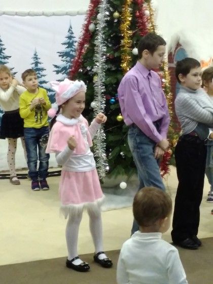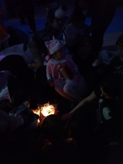 Уже и ночь наступила. Раздули костёр, чтобы погреться. К нему и Снегурочка пришла. Спела песню, поводили хоровод. Кстати, Снегурочка у нас была та же, что и в прошлом году. А заяц в прошлом году был сначала снеговиком, потом дедом Морозом.