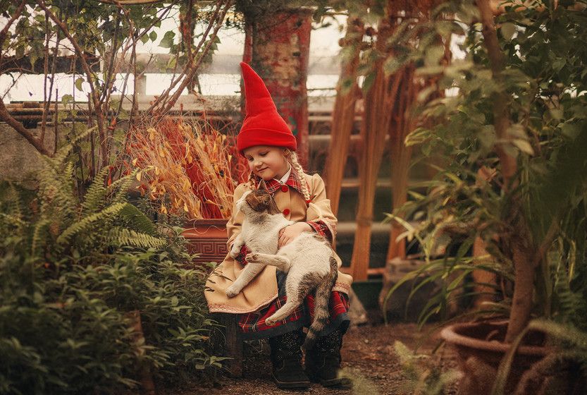 При съёмках ни одно животное не пострадало. ??? Так получилось, что вначале фотосессии к нам пришел «местный» Кот, залез к Нике на лавочку и мурчал. ? Ну почти так было?. Ребёнок таскал потом этого кота по всему саду, кот не жаловался. ??? Мы с MasterRina (дизайнер одежды) сделали максимально экономный вариант такой съёмки, с большим количеством бонусов.
