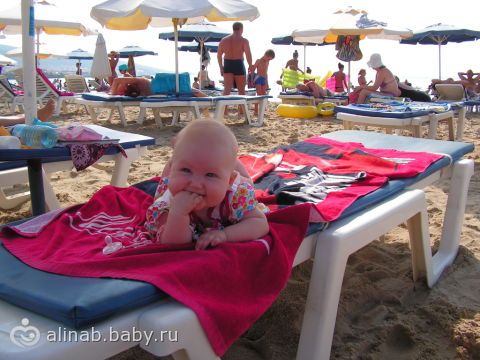 мы в 5 месяцев летали в болгарию на 2 недели. все было просто отлично- никаких проблем. дочь даже лучше стала кушать и спать. там научились ползать. она много спала в кляске пока мы загорали, видимо морской воздух влияет. я с собой баночек с пюре брала и смесь. вода там итак была хорошая.