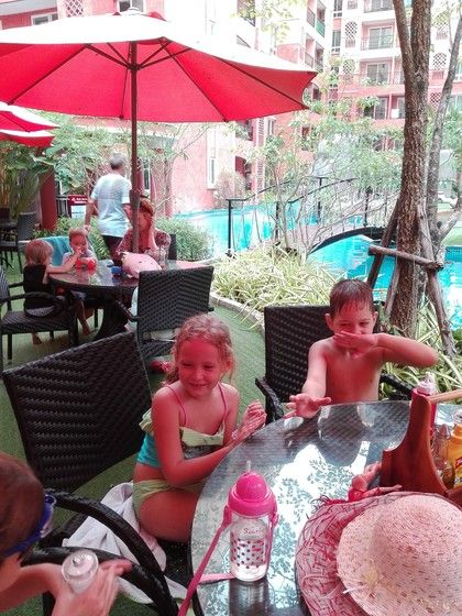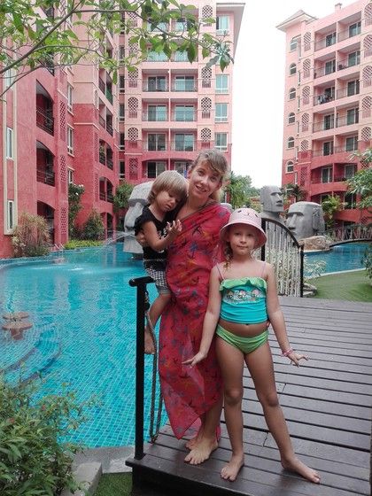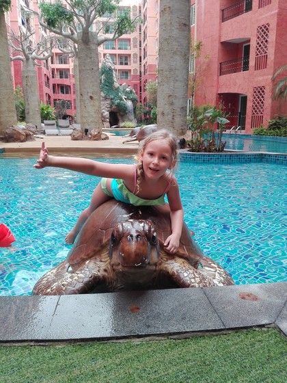 Сегодня с утра собрались с соседками, а это 6 мам и толпа детей)), погулять в кондо Семь морей… Находится в минутах 15 на машине, таксист довез нас за 200 бат.