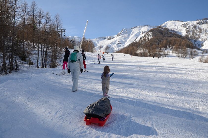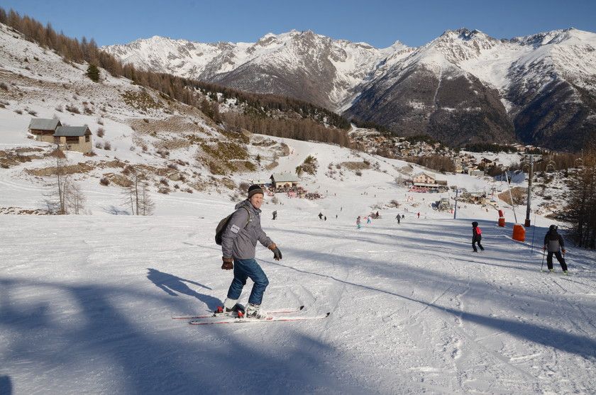 При спуске Жозефин повезло, Руслан её покатал на лыжах.