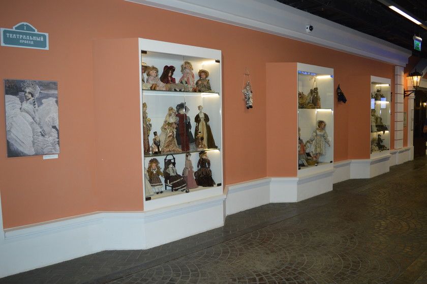 Возле Дома моды была выставка кукол.