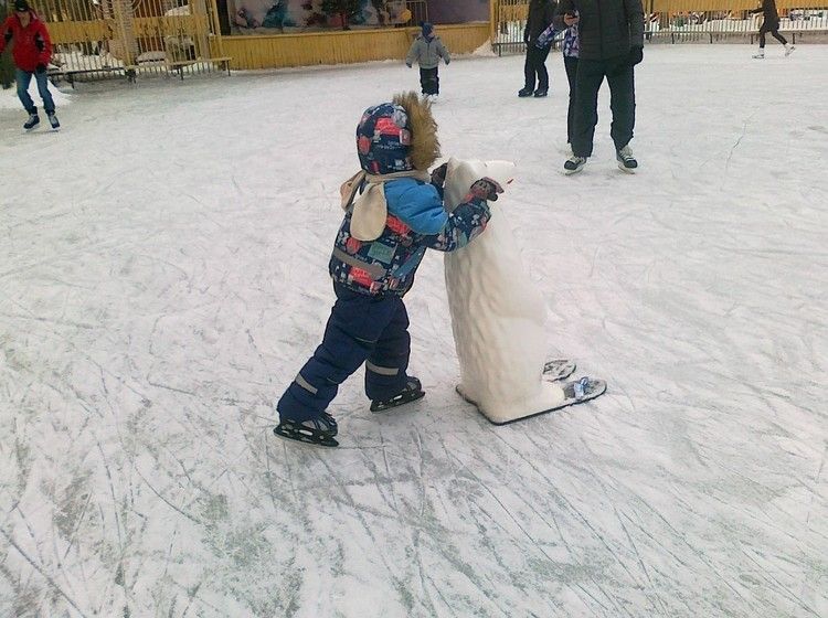 Рядом только я, в 2.5 были двухполозные, катались за зиму мало, главное, было удовлетворить интерес, двигалась без моих рук сама, руку прям вырывала, сама и точка, но так как она не падала, то я и не держала, просто рядом. В прошлом году купили коньки раздвижные, уже обычные, однополозные, стояла уверенно, сразу без моей руки, ноги не разъезжались, хорошо держала равновесие. Ну, а в этом году, коньки те же, уверенности и скорости больше. Сейчас катается примерно так: разбег (прям бежит), катится, опять бег, опят катится. Учу её бегать меньше. С щиколотками всё норм. Мы в этом году пытались с тренером (бесплатно на нашем ближ катке с группой). Раз сходили и всё, там надо уже прям кататься, она их учит ласточка делать, циркуль, цапельку, танцы разучивают, хотя в объявлении на катке написано, что для неуверенно стоящих на коньках. В общем, с тренером у нас не пошло. Всё сами.)