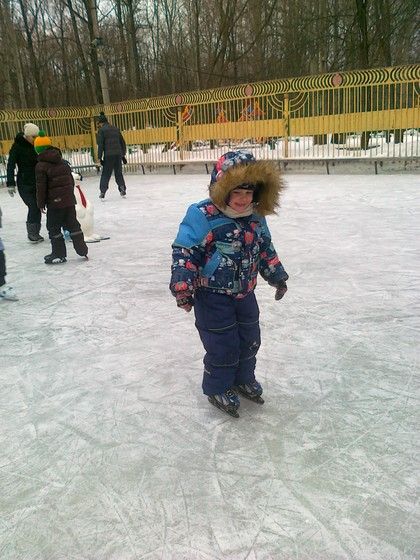 Мы на коньках попробовали в этом году, вначале еле-еле а сейчас стало получаться, особенно если есть с кем покататься то катается, одному ему скучно.с лыжами пока не дружим хотя и попробовали.