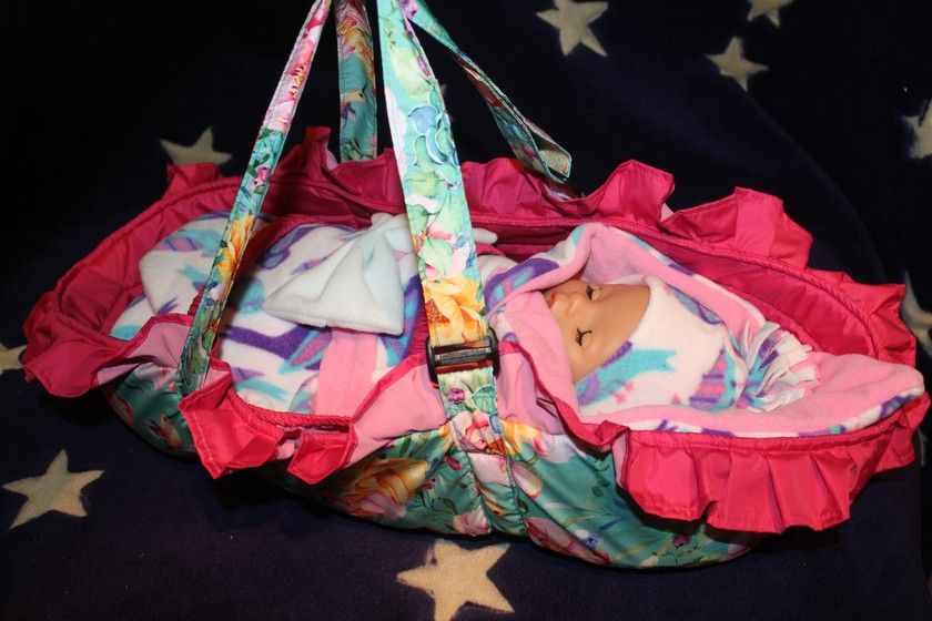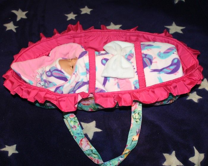 просто покажу из последнего, интересная была работа, переноску, постельку, слюнявчик впервые делала. Дочка сразу запросила себе постельку, и ей сделала, но не фоткала еще, и научилась наконец то колготки Беби Бону делать (фото пока нет)