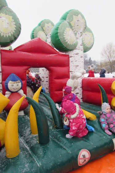 Впервые вижу, чтоб батут зимой надували! Мои даже не знают, что чучело Масленицы сжигают, никогда не доводилось увидеть.