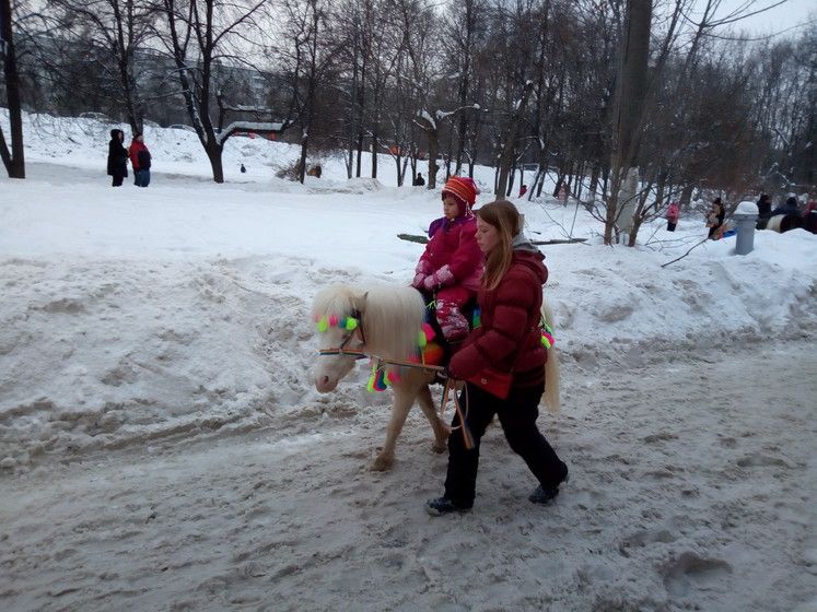 На Проводы Масленицы мы поехали в Коломенское, на традиционные тамошние народные гуляния. Ехала я одна с девицами и коляской… и прокляла все на свете — таскаться там по снегу было очень тяжело, коляску пришлось тащить отдельно, девицы- отдельно...