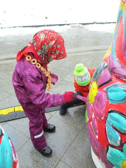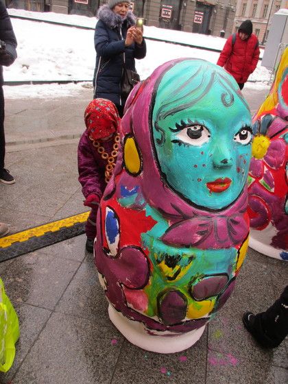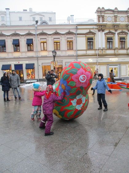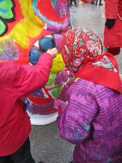 А так же матрёшки для раскрашивания. Хотя Ире дали краску в тон её одежды, она благополучно окрасилась о другую матрёшку. Как говорится, чего боишься, то и случается. На самом первом нашем пасхальным фестивале, Ира тоже окрасила куртку, когда расписывала яйцо. Та краска не отстиралась. И я очень долго не пускала дочь к развлечениям с краской. Наконец решила рискнуть и вуаля. Эта куртка всё таки при 60 градусах почти отстиралась. Пятна можно разглядеть, если знать, что они там есть. Вообще это вина организаторов, что матрёшки для раскрашивания стоят так близко друг к другу. Дети же и наклоняются, и присаживаются.