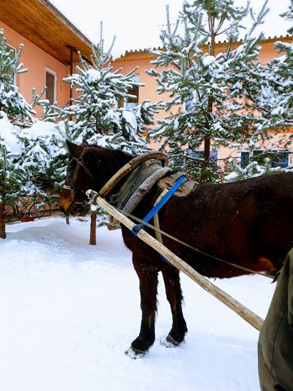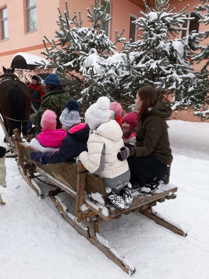 На Масленицу пришлось ехать на электричке в нашу Воскресную школу. Взяли нашу бабушку и сходили на замечательный концерт, потом были уличные гуляния для детей. их даже на лошади в телеге по поселку катали ))) А уж в снежки наигрались и в снегу навалялись вообще до одури )))) Но очень тяжело обратно на электричке ехать, и к расписанию привязан, бесит прям!
