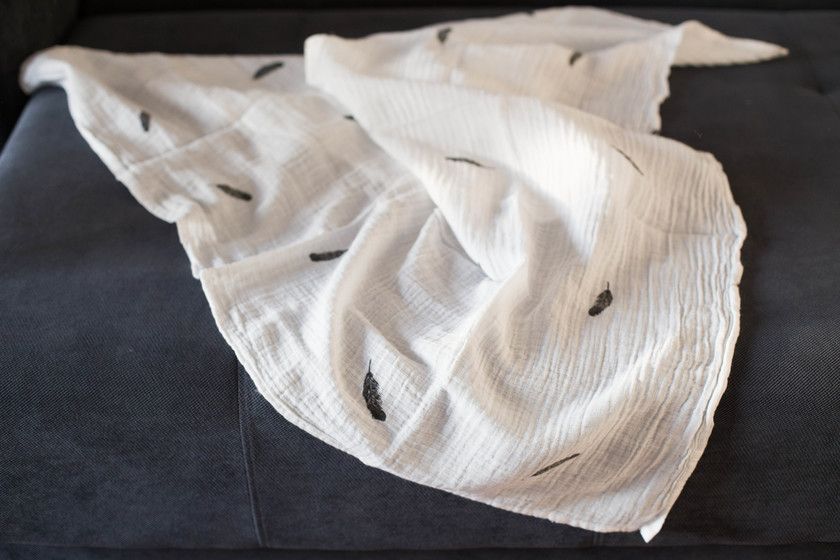 У меня муслиновая пелёнка мягкая, она как бинт только не такая «прозрачная». С собой беру на случай, если малыш срыгнет. В жару от солнца коляску прикрывала.