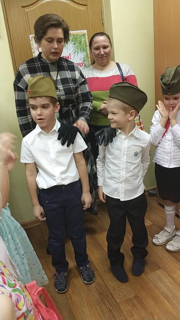 Спасибо! Свои. Сказали у кого есть приносите, у кого нет сделайте сами. Вот мальчик с родителями сделать фуражку, погоны)