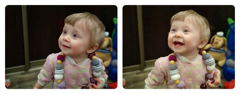 А я пробовала доче резиночки на волосы надевать, так ей нравится. Жаль, брат не дает подольше походить — у него мания просто все сдирать с ее и своей головы