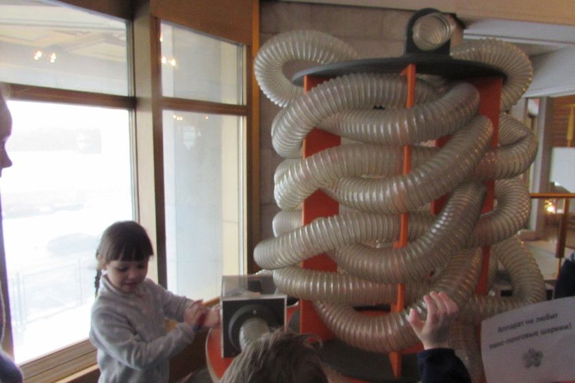 Была площадка с химическими опытами, но народу там было слишком много, Ане было не слишком понятно, поэтому мимо прошли.