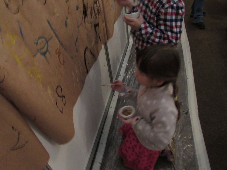 Зато Аня успела взять красящие пигменты и поучаствовать в мастер-классе по приготовлении краски и рисованию.