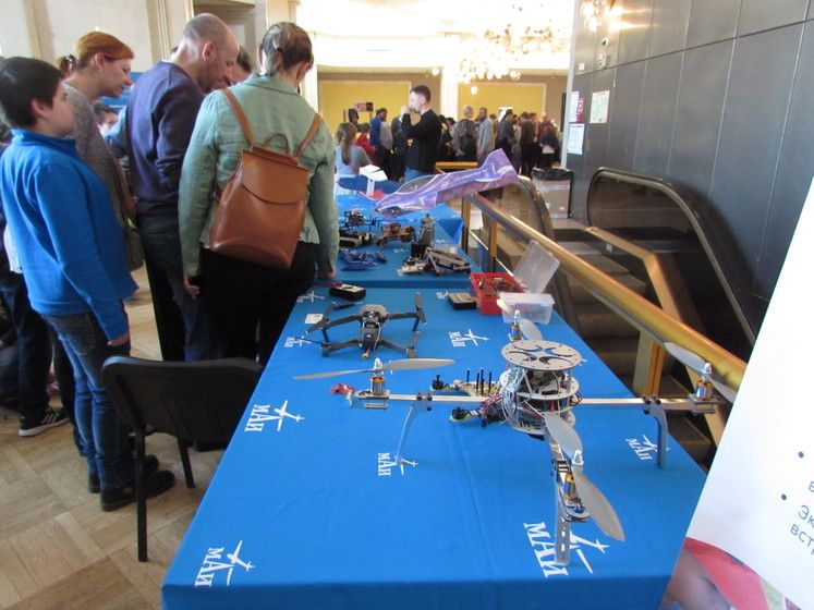 На стенде Московского авиационного института демонстрировали роботов, в том числе летающих.