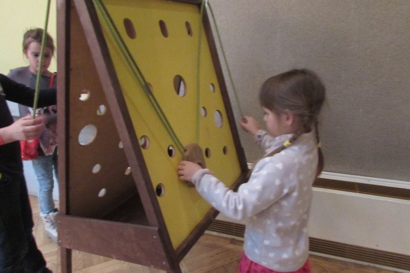 Стенд, имитирующий чихание — очень нравился детям, они постоянно засовывали туда платочки, те с большой скоростью пролетали по трубками и вылетали наружу, а дети их ловили.