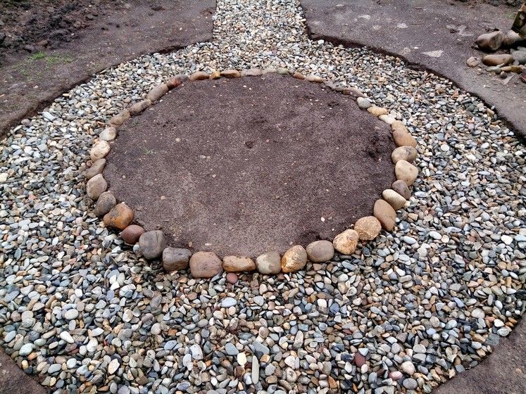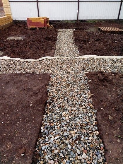 Как декорировать дорожки, я придумала. Типа таким образом, осталось сообразить, где набрать столько камушков. Сначала думала за пластиковую изгородь, но хочется натуральности и естественности:)