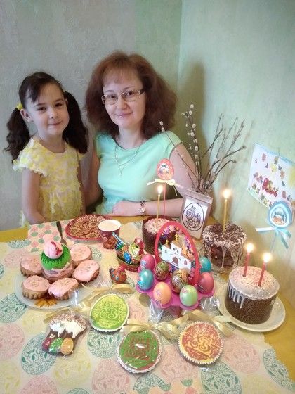 Наше утро началось с пасхального завтрака. Собрали всё, что было приготовлено, куплено, подарено.
