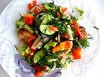 Овощи и зелень мелко нарезать.