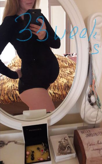 Не особо фоткаюсь в эту беременность, просто для сравнения решила сделать фотку.Живот такой же почти, как и с Алисией.