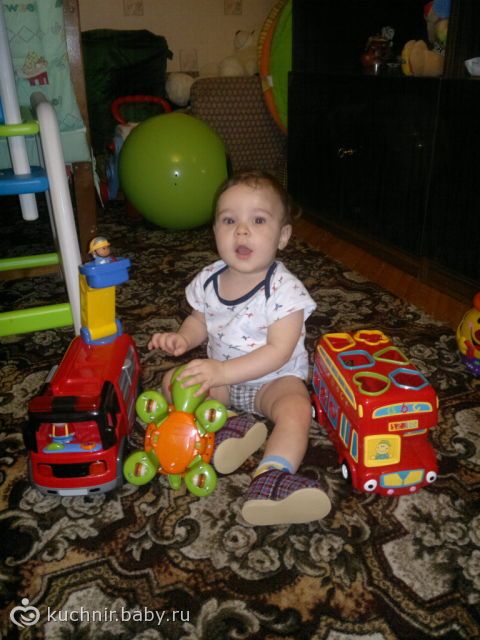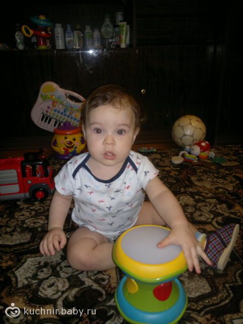 мы катаем машинки, рисуем собераем и выкладываем формочки из горшочка фишер прайс, стучим по барабану, научила его включать и выключать телик, кормим маму всё суём ей в рот, показывает на кубиках где кошка собочка или цыплёнок, тыкает по пианино, всё кругом разбрасывает!!!!