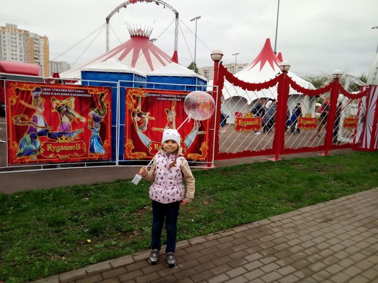 Как и обещала Ане, сводила ее в цирк. В цирк на Вернадского мы уже не поехали, зато узнали, что в соседнем районе работает цирк-шапито «Кудзинов». Это первый цирк, в котором Аня была, 2 года тому назад. Поэтому она радостно согласилась еще раз туда пойти.