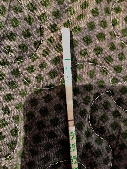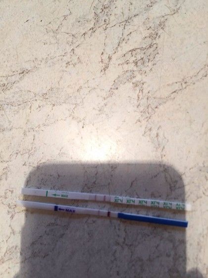 Вот фото) если присмотритесь, то увидите! Полосочку он мне опять же таки показал не сразу, а через 5-10 минут после высыхания. Я все грешила на реагент, который просох и визуально дает эффект // полос. Да и в интернете были не очень то и хорошие отзывы о тесте марке «Бишур».