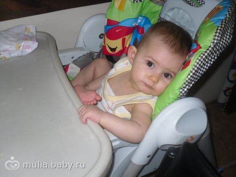 кушает доча уже почти все: овощные и фруктовые пюре, кашки, творожок и йогурт (покупаю на молочке), смесь, супики (по другому не ест мясо и картошку), ночью мамина грудь)))