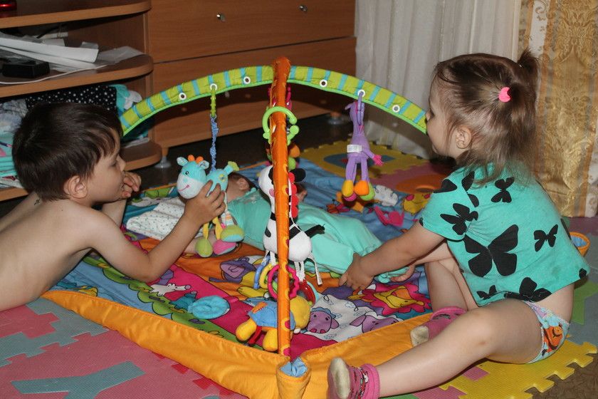продала еще целый пакетик вещей и купила крохе коврик, теперь всем весело