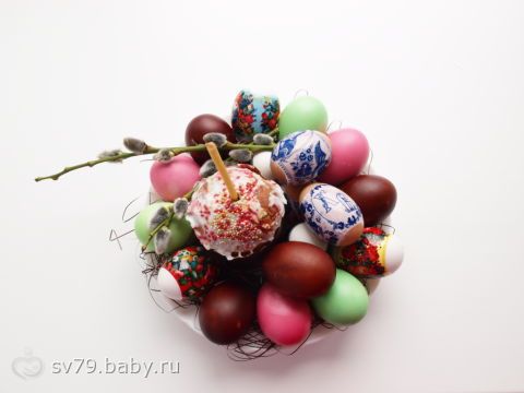 с миру по нитке)))) сын вербу принес, куличик маленький ему в воскресной школе подарили. так все и собралось.....