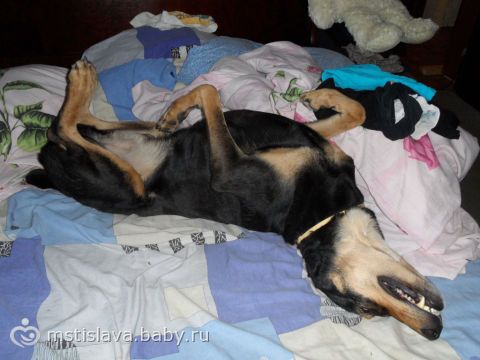я вам вот что посоветую, подкладывайте к её постельну впитывающие пелёнки, и ничего страшного не случится. опять таки собаке можно обустроить её угол так чтоб ребёнок не добрался. перегородкой. например… мебелью… тем более рас она не совсем ещё слепая, силуэты различает наверняка. в перегородку не врежется.