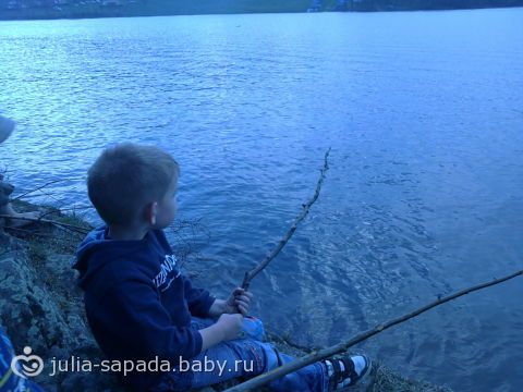 Доменик папе доказал, что он прирождённый рыбак, так терпеливо сидел в ожидании рыбки, что на следующую рыбалку обещал оснастить ему настоящую удочку)))