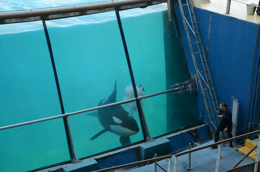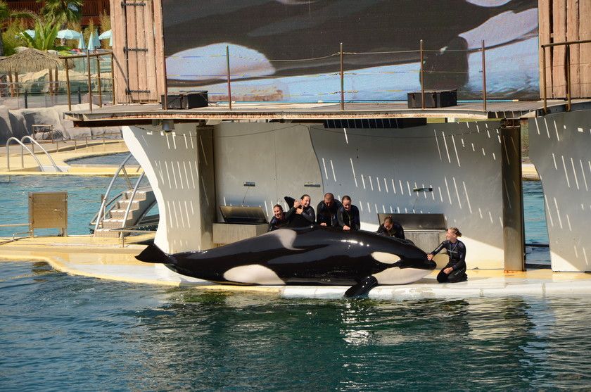 Разумеется, жалко животных.Такие прекрасные, мощные и в таких маленьких аквариумах.После выступления смотрела на них, плавают по кругу, бедные.