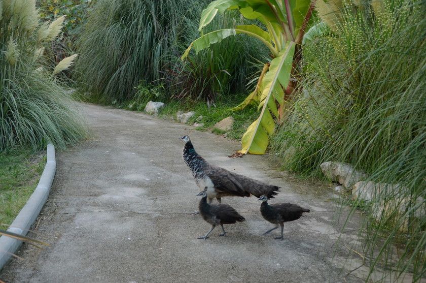 Тут я впервые увидела павлина с павлинятами, никогда малышей не видела в живую.