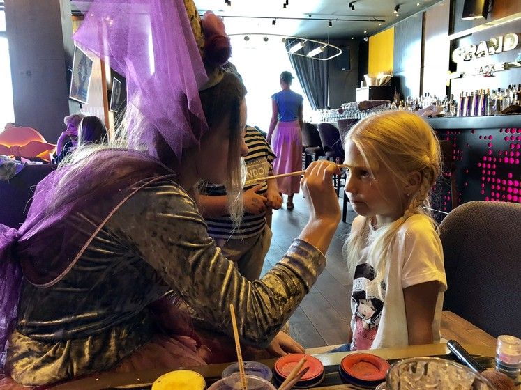 Сегодня дети танцевали, пели, участвовали в конкурсах, рисовали, играли в детской комнате, получали торт и подарки, участвовали в кулинарном мастер классе по приготовлению хачапури по мегрельски. Лица всем разукрасили по очереди)) атмосфера домашняя) везде бегают дети)) организация праздника на высоте)