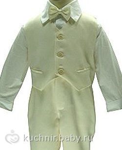 Жилет + брюки + сорочка с длинным рукавом + бабочка. Пояс брюк посажен на резиночку, прекрасно тянется. Бабочка на резиночке