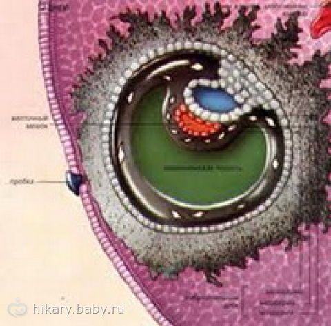 Итак, морула приобретает форму ягоды шелковицы наполненной жидкостью. К третьему-четвертому дню бластула, пройдя путь по маточной трубе, попадает в полость матки. К этому времени, в полости матки должно уже быть все готово к гостеприимному приему новой жизни – эндометрий матки должен быть созревшим, тонус матки снижен. В полости матки морула превращается в бластоцисту – пусть вас не пугает такое страшное название – это такая же морула, но в ней начинает происходить специализация клеток. Одна часть клеток бластоцисты будет отвечать за развитие эмбриона (эмбриобласт), а друга за развитие плаценты и плодных оболочек (трофобласт). Данный процесс специализации клеток будет происходить в течение 3-х дней, пока зародыш будет находиться в свободном состоянии в полости матки. Далее происходит имплантация – очень волнующий момент. Происходит физическое слияние мамы со своим будущим малышом. К моменту имплантации слизистая маки содержит все необходимые питательные вещества для начального развития плода, она готова к наиболее тесному сотрудничеству.