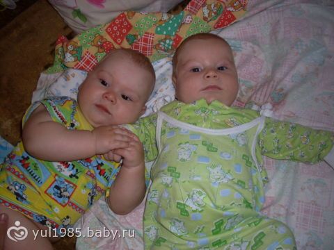 мой Сашенька (на фото справа в зеленой кофточке) с двоюродным братом Артемом, Артем старше Саши на 2 месяца. На фото Сашеньке 2 месяца, Артему 4.