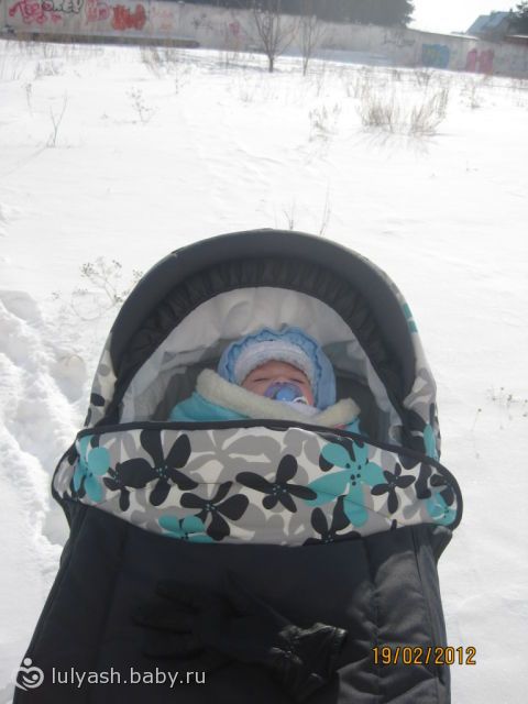 у нее оооочень большая люлька, нам в феврале 7 месяцев было мы гуляли в зимнем комбезе и в одеяле на овчине, и место еще оставалось