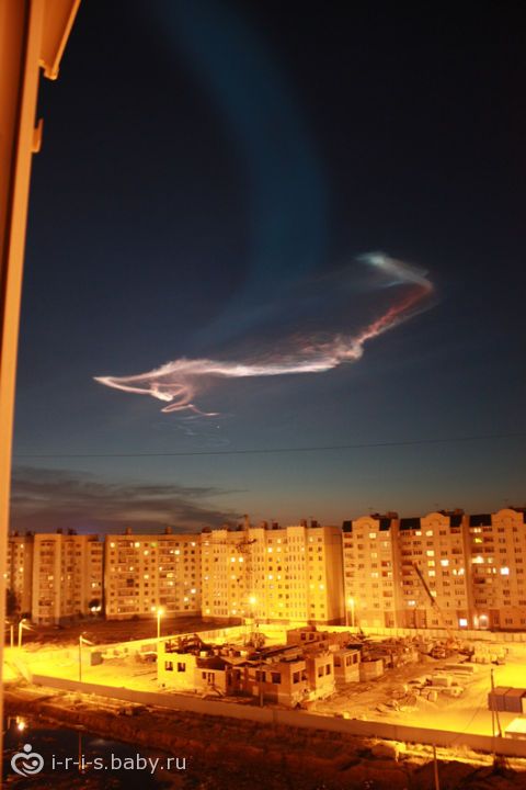 В течение нескольких секунд небо озаряла длинная широкая полоса, которая переливалась разными цветами.
