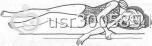 2. Упражнения в положении лежа на животе. Лечь на правую сторону кровати. Правой рукой придерживаться левого края кровати, подтянуться к нему и перевернуться так на живот. Ноги при этом не сгибать, голову не поднимать (рис. ниже), лбом опереться о тыльную сторону кистей рук.