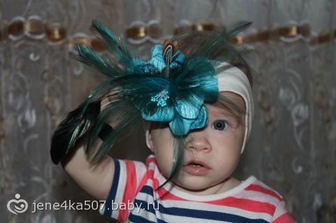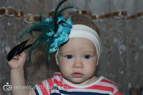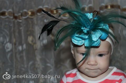 ахахахах))))))) Хит сезона)))) Жалко только что эта повязочка не очень функциональна)) Только для фоток))) и то за время нашей фотосессии пару перышков Сашенька выдернула)))