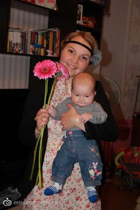 это она впервые сама держит погремушку